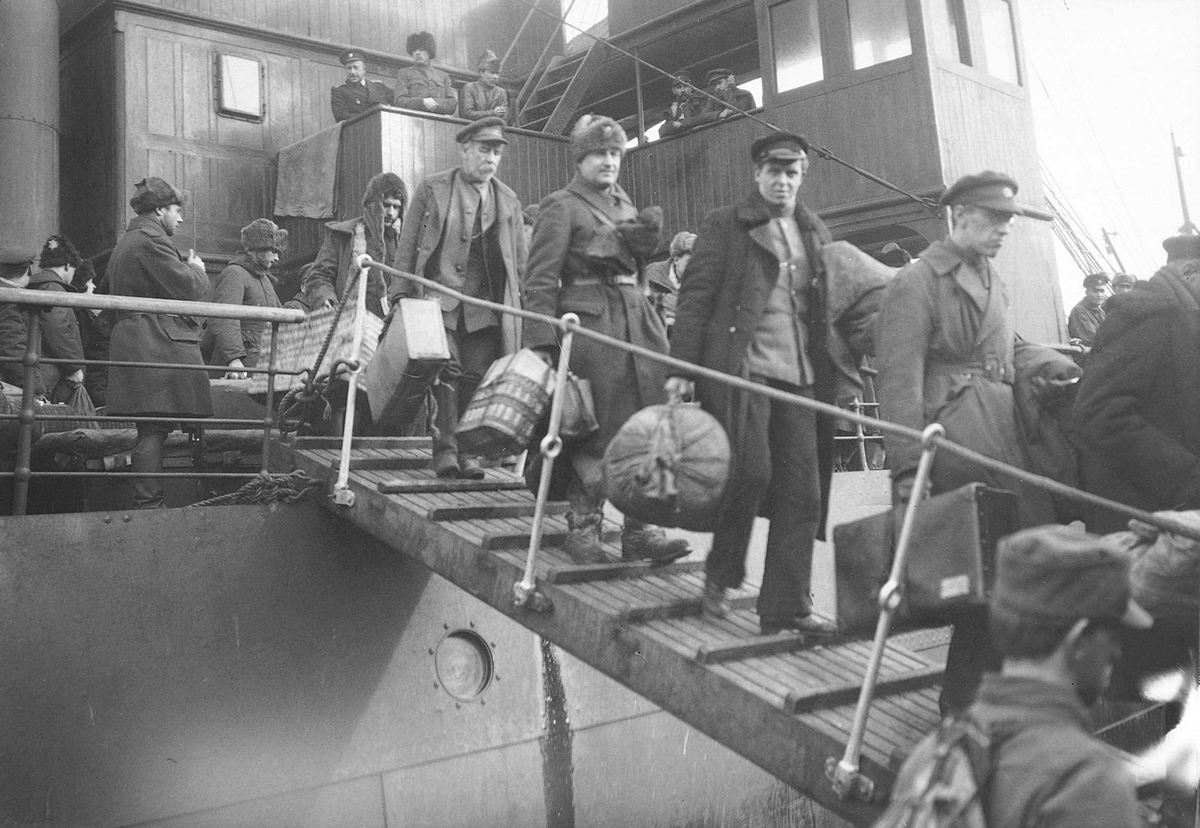 3 марта 1920 года «Козьма Минин» и «Ломоносов» ушли из Тромсё, и 6 марта прибыли в Хоммельвик. 20 марта русские были интернированы в Варнесмуене – военном лагере неподалеку от Тронхейма. Всего было интернировано 663 человека, меньше, чем прибыло в Тромсё, т. к. в Тромсё остались около 40 раненых и больных, 57 человек вернулись в Россию, а часть беженцев, у кого были связи в других странах, сразу уехали в Великобританию, Францию, Финляндию. Генерал Миллер вместе с беженцами находился в Варнесмуене, а вскоре уехал во Францию, где стал главным уполномоченным по военным и морским делам генерала Врангеля в Париже.