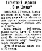 На судостроительном заводе в Николаеве на Черном морс был построен и спущен на воду крупный ледокольный корабль «Микоян».