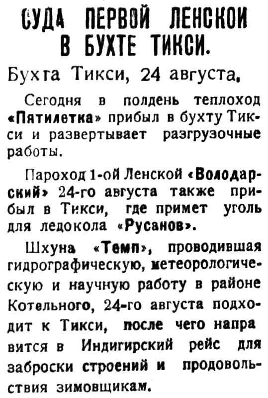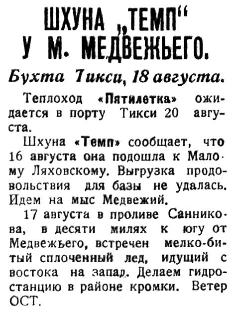 * 1931 * * * Темп. гс ГУСМП. в Норвегии. 31х7х3м. 1х200лс. 7уз. списанo в 1958.