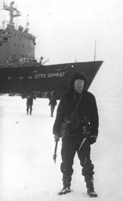 Но это судно не пленник арктических льдов, и нет необходимости спешить ему на помощь. На его борту крупными белыми буквами надпись: «Отто Шмидт». Первый советский научно-исследовательский ледокол. Его пребывание здесь, на севере Баренцева моря, предусмотрено научной программой. Ледокол уже почти неделю стоит на дрейфовой станции, проводя океанографические исследования в этом малоизученном районе моря. А вельбот спущен для того, чтобы удобнее было покрасить борта.