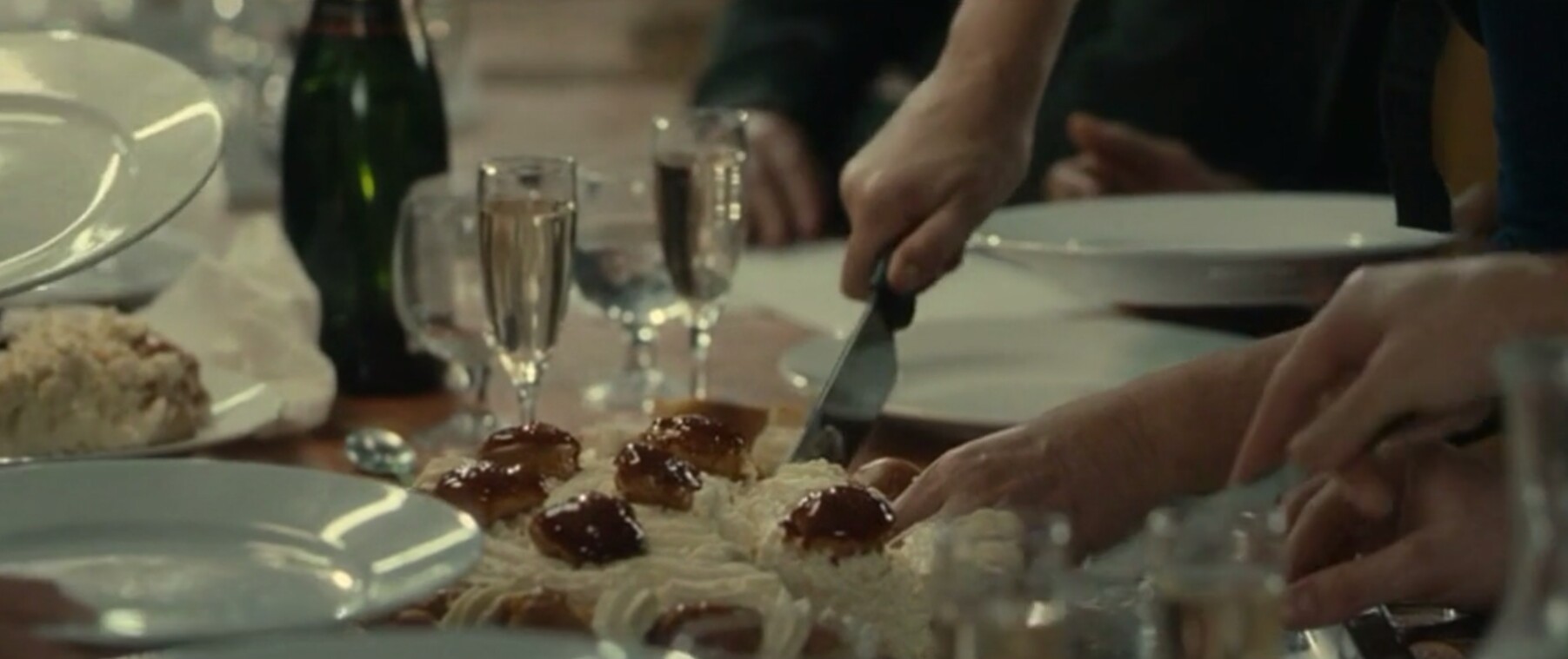 Кульминация картины - прощальная трапеза по случаю отъезда Гортензии, в ходе которого она с гордостью сообщает, что "сумела с трудом получить эту должность, на которую требовался молодой повар-мужчина, способный готовить на уровне школьной столовки".
