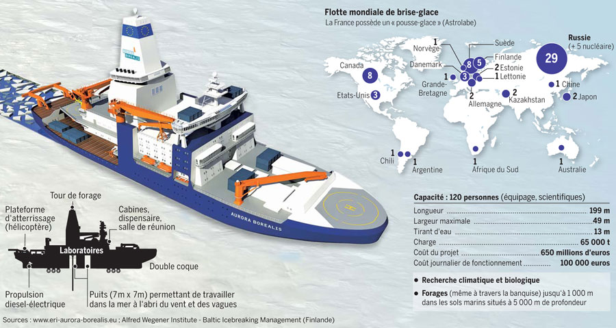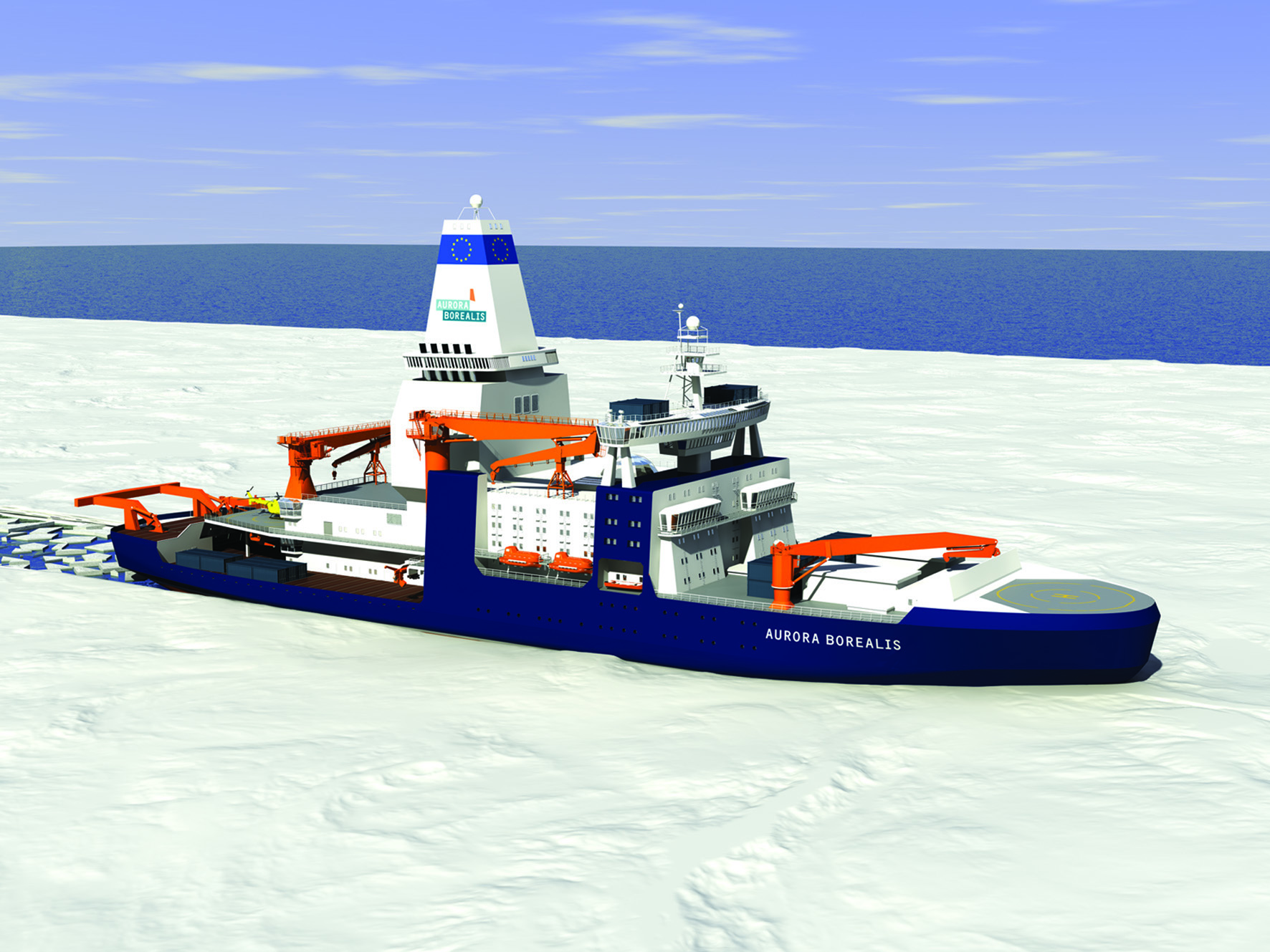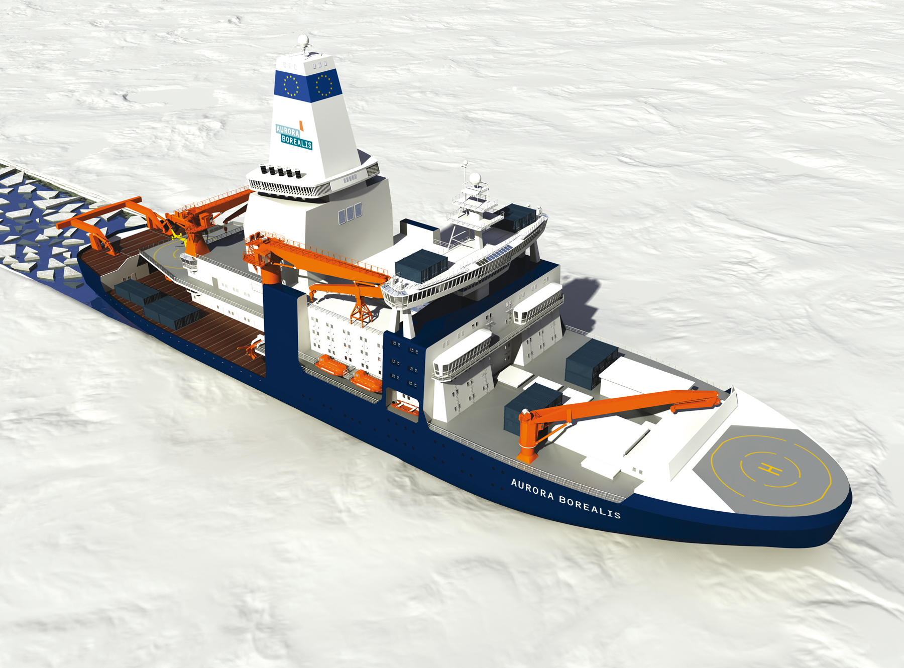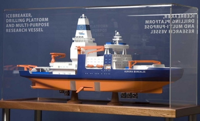 3 декабря финская фирма "Wartsila", выпускающая двигатели, и Институт полярных и морских исследований имени Альфреда Вегенера представили проект европейского научного ледокола "Aurora Borealis" ("Северное сияние"), предназначенного для исследований в условиях полярных морей.