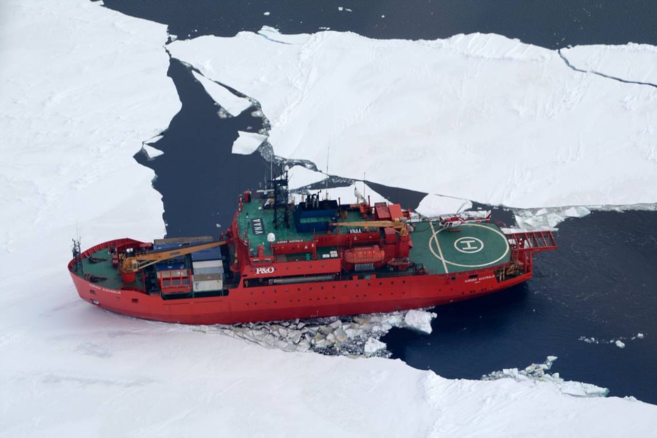 Австралийский ледокол Aurora Australis сел на мель у побережья Антарктиды