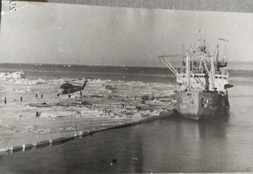 Удалось идентифицировать далеко не сразу - при увеличении изображение плыло и прочесть название не получалось. Наличие на снимке вертолёта LH-34D из состава VX-6, обеспечивающей все антарктические экспедиции США, увело идентификацию судна в сторону, т.к. решил, что корабль американский. Стал искать, где наши экспедиции могли пересекаться с американскими и нашёл похожий снимок