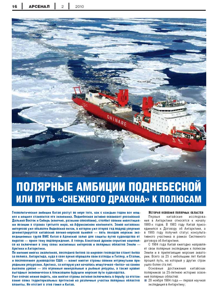 ПОЛЯРНЫЕ АМБИЦИИ ПОДНЕБЕСНОЙ ИЛИ ПУТЬ «СНЕЖНОГО ДРАКОНА» К ПОЛЮСАМ