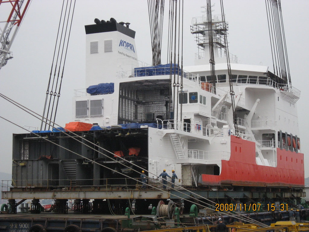 Республика Корея вошла в число стран, которые в состоянии самостоятельно производить ледоколы. 11 июня (2009 г.) на верфи «Ёндо» компании «Ханчжин хэви индастриз» в городе Пусане состоялась церемония спуска на воду первого южнокорейского научно-исследовательского ледокола «Араон» (Araon, 아라온), созданного на основе отечественных технологий. До сих пор Корея не имела своих собственных судов для плавания во льдах и была вынуждена платить немалые деньги на их аренду у других стран.