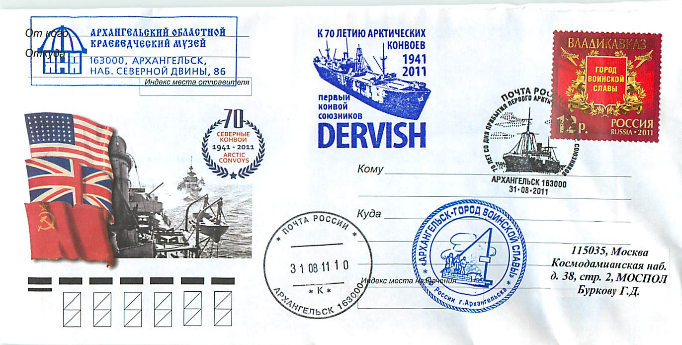 Россия 2011 70 ЛЕТ АРКТИЧЕСКИХ КОНВОЕВ. Первый Конвой союзников «DERVISH»