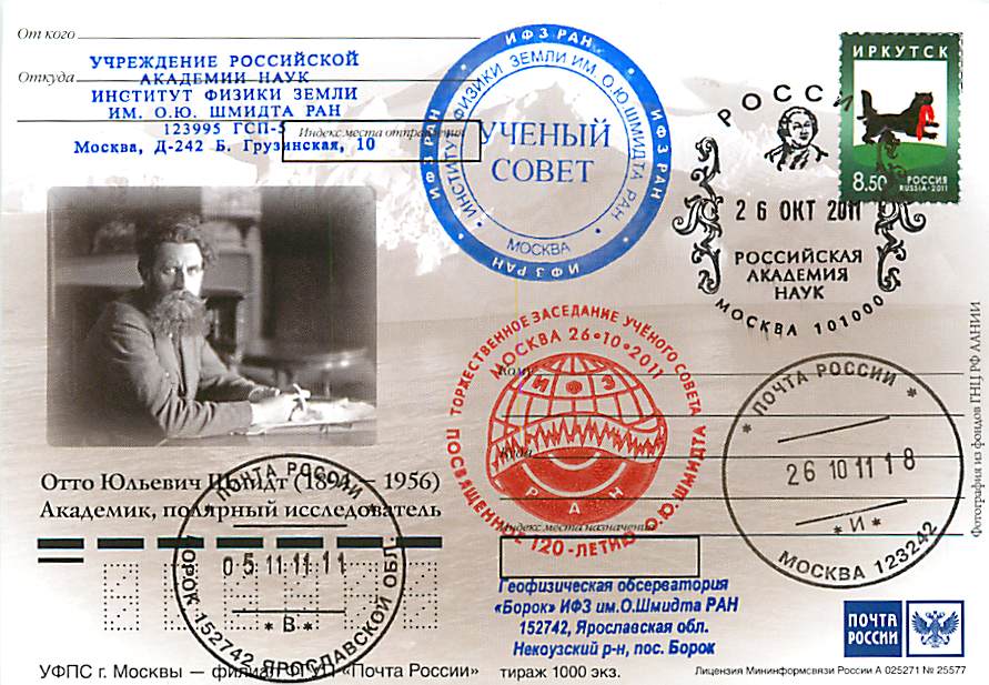 Россия 2011. 120 лет со дня рождения полярного исследователя Отто Шмидта