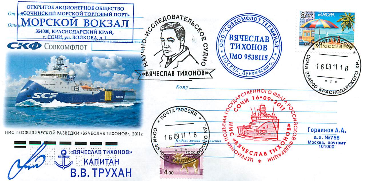 Россия 2011. Научно-исследовательское судно геофизической разведки Вячеслав Тихонов.Подъем флага