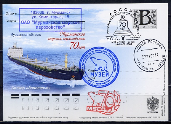 #1105 70 ЛЕТ МУРМАНСКОГО МОРСКОГО ПАРОХОДСТВА БАЛКЕР "ЗАПОЛЯРЬЕ"