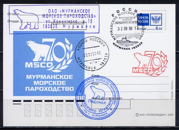 #1106 70 ЛЕТ МУРМАНСКОГО МОРСКОГО ПАРОХОДСТВА ЛЕДОКОЛ "ВЛАДИМИР ИГНАТЮК"
