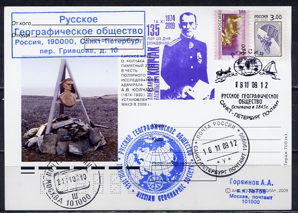 #1118 135 ЛЕТ СО ДНЯ РОЖДЕНИЯ А.В.КОЛЧАКА. РУССКОЕ ГЕОГРАФИЧЕСКОЕ ОБЩЕСТВО СПБ