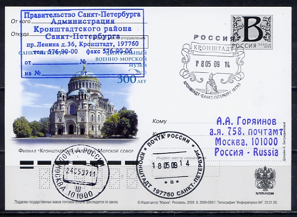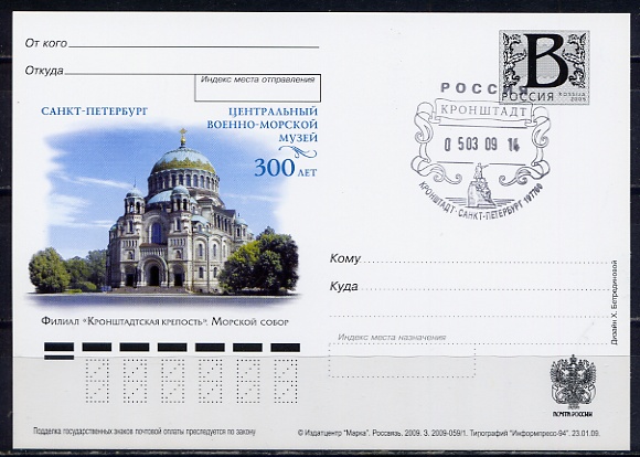 #1123 ЦЕНТАЛЬНЫЙ ВОЕННО-МОРСКОЙ МУЗЕЙ. ФИЛИАЛ "КРОНШТАДСКАЯ КРЕПОСТЬ". МОРСКОЙ СОБОР КАРТОЧКА С ЛИТЕРОЙ В