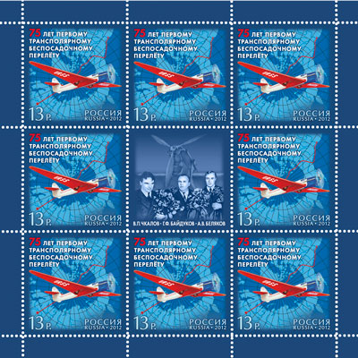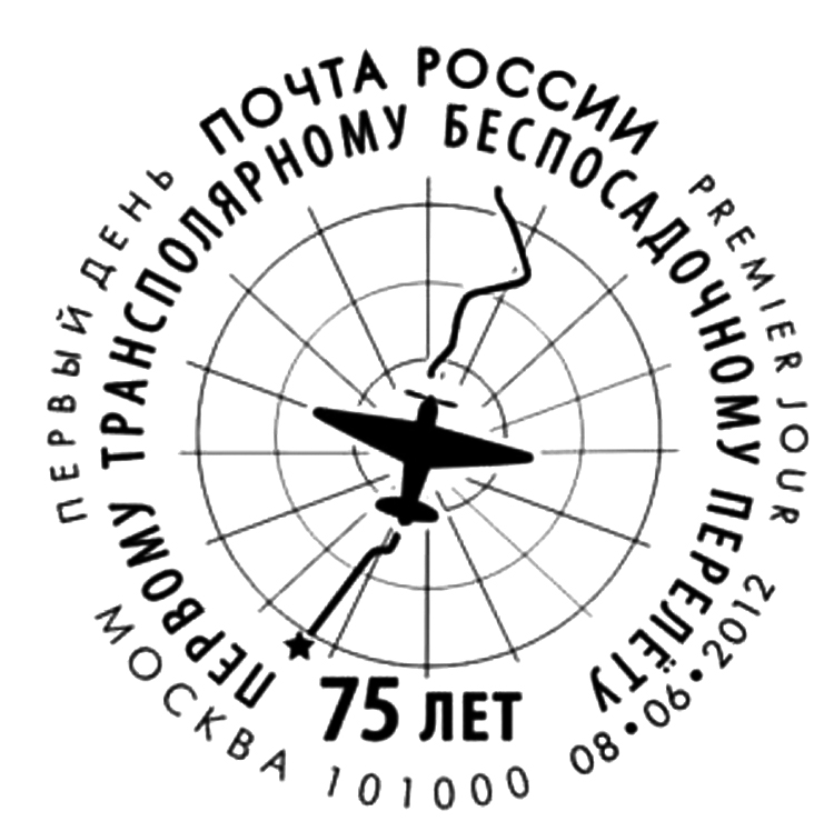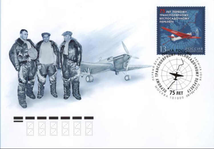 - "75 лет беспосадочному перелету экипажа В.П.Чкалова" ("Первый день") 08.06.2012 - Москва 101000 и Санкт-Петербург 190000