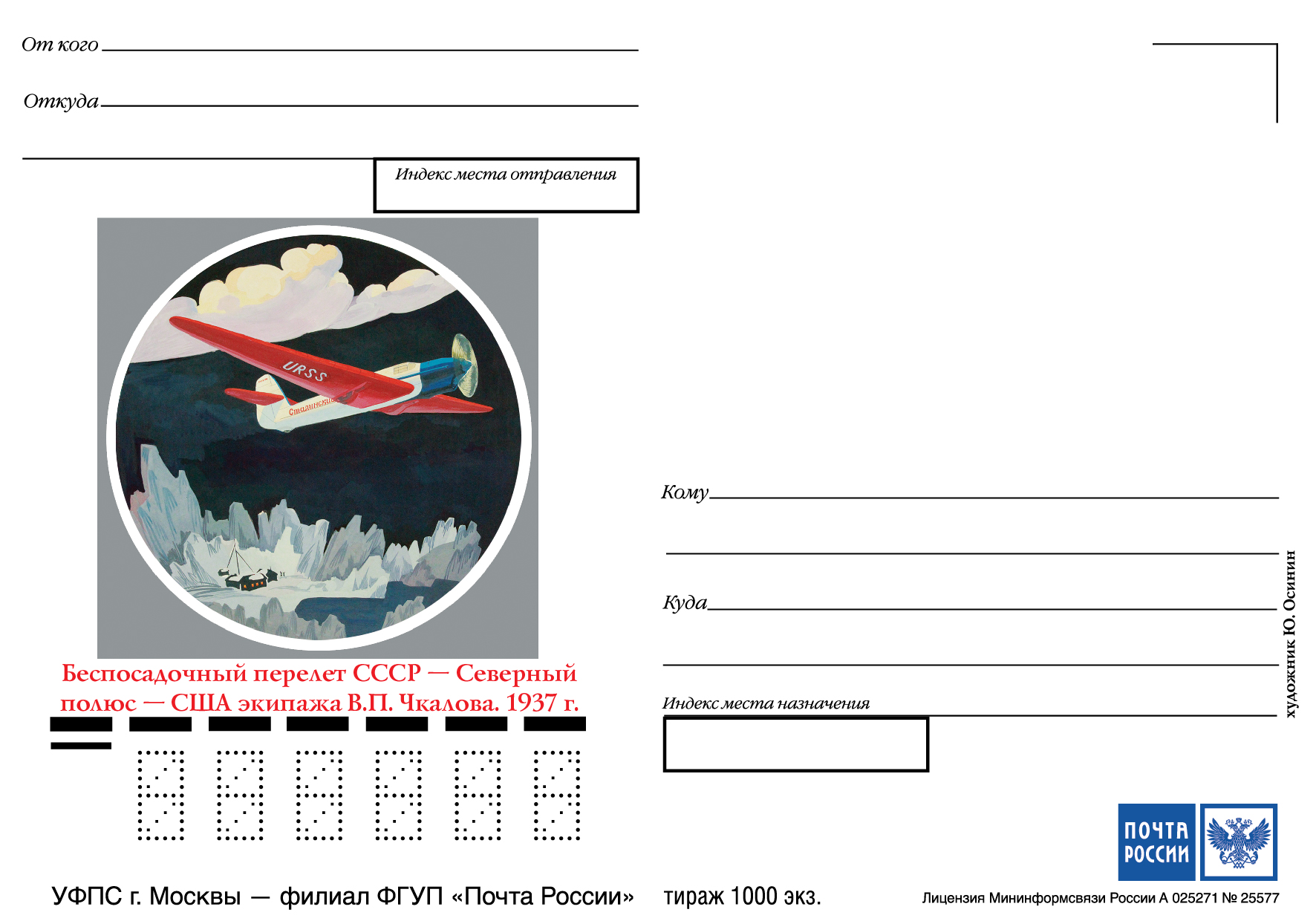 По перелету Чкалова-Белякова-Байдукова планируются следующие гашения: