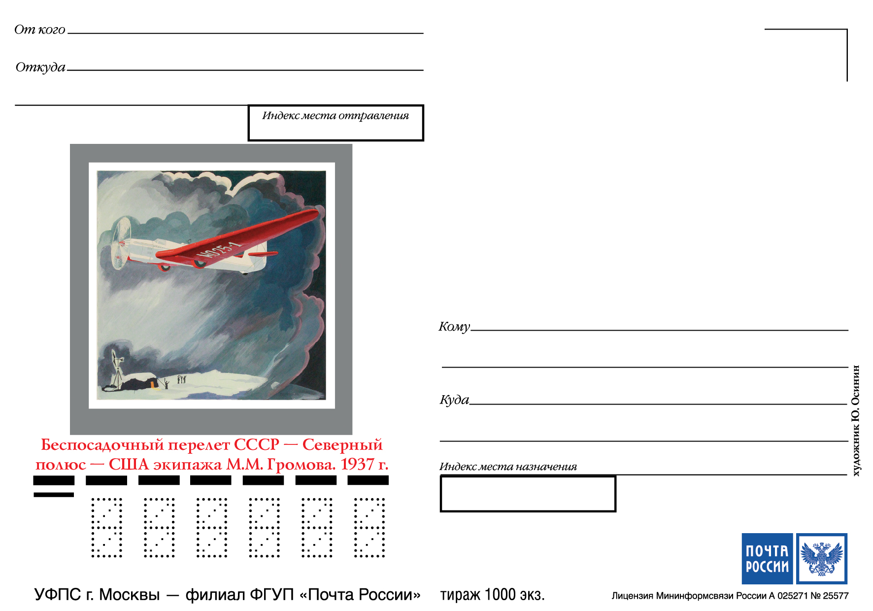 Московская почта выпустила к юбилеям перелетов три немаркированные почтовые карточки