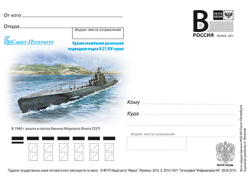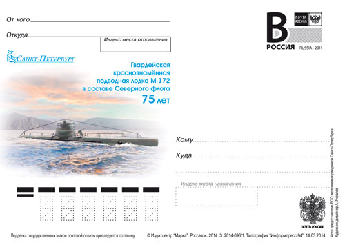 № 2014-096/1. Санкт-Петебург. Гвардейская краснознаменная подводная лодка М-172 в составе Северного флота. 75 лет26.03.14, дизайнер – Яковлев А.