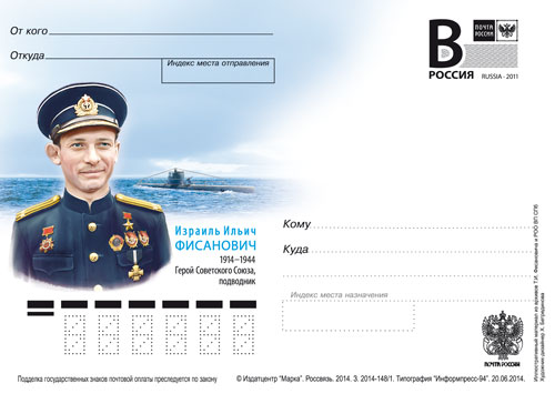 № 2014-148/1. Израиль Ильич Фисанович (1914-1944), Герой Советского Союза, подводник1.07.14, дизайнер – Бетрединова Х.