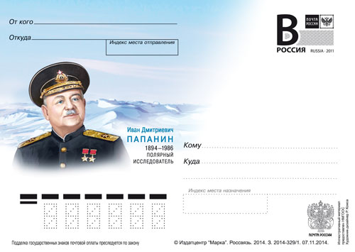 № 2014-329/1. И.Д. Папанин(1894-1986), полярный исследователь18.11.14, дизайнер – Комса Р.