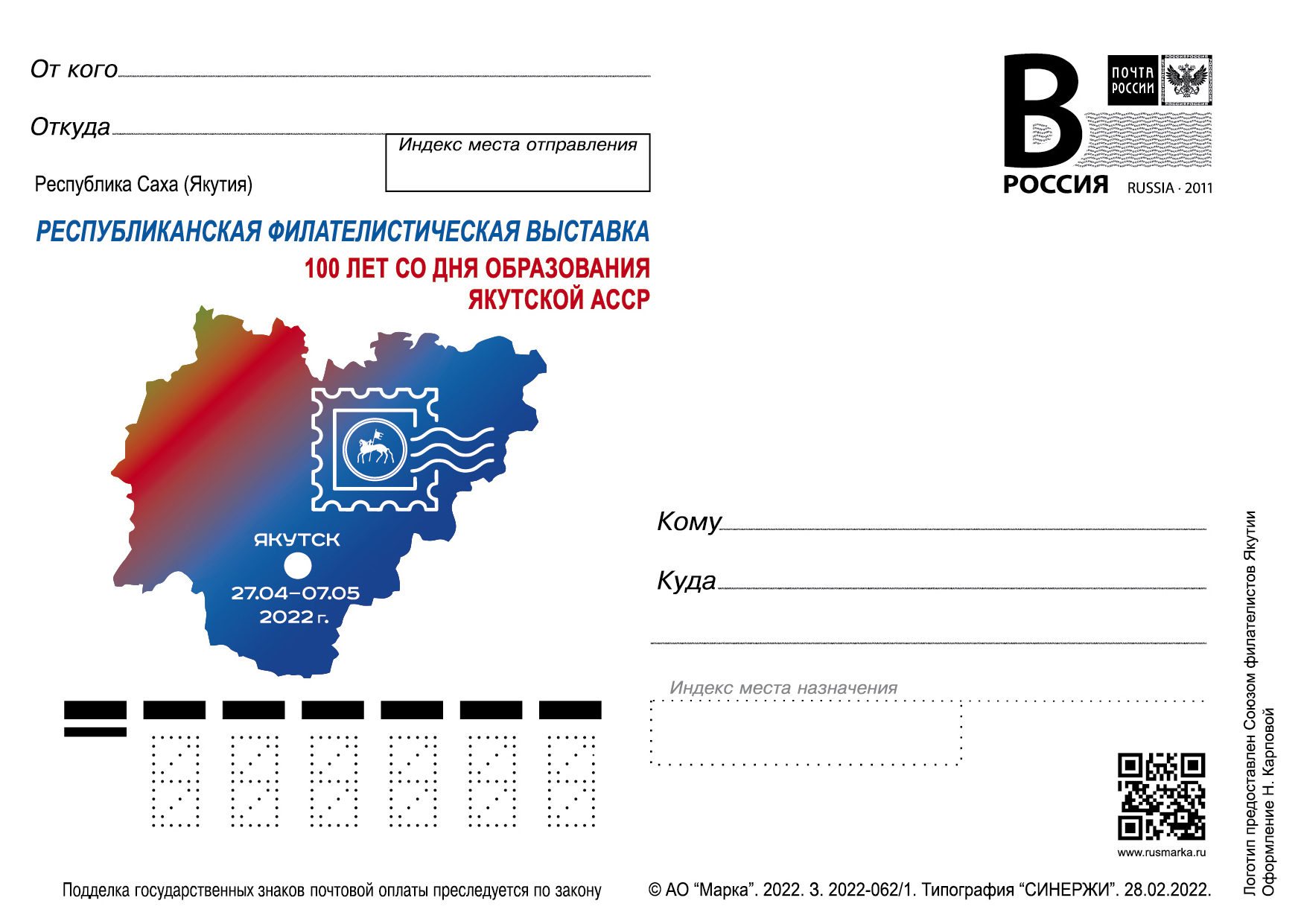14.03.2022 Оформление – Карпова Н. Логотип предоставлен – Союз филателистов Якутии