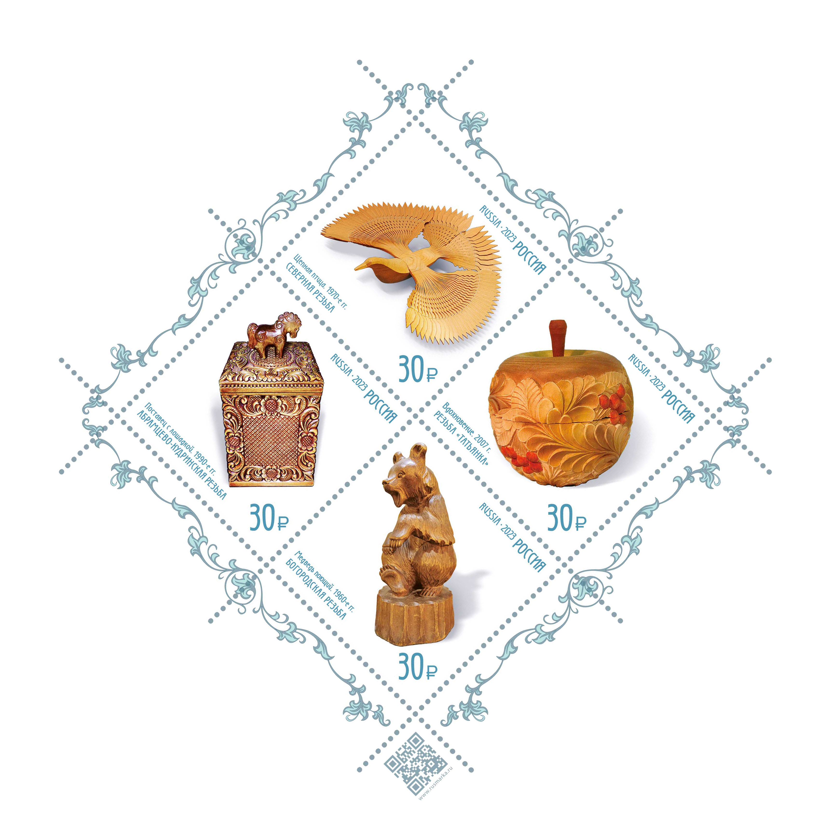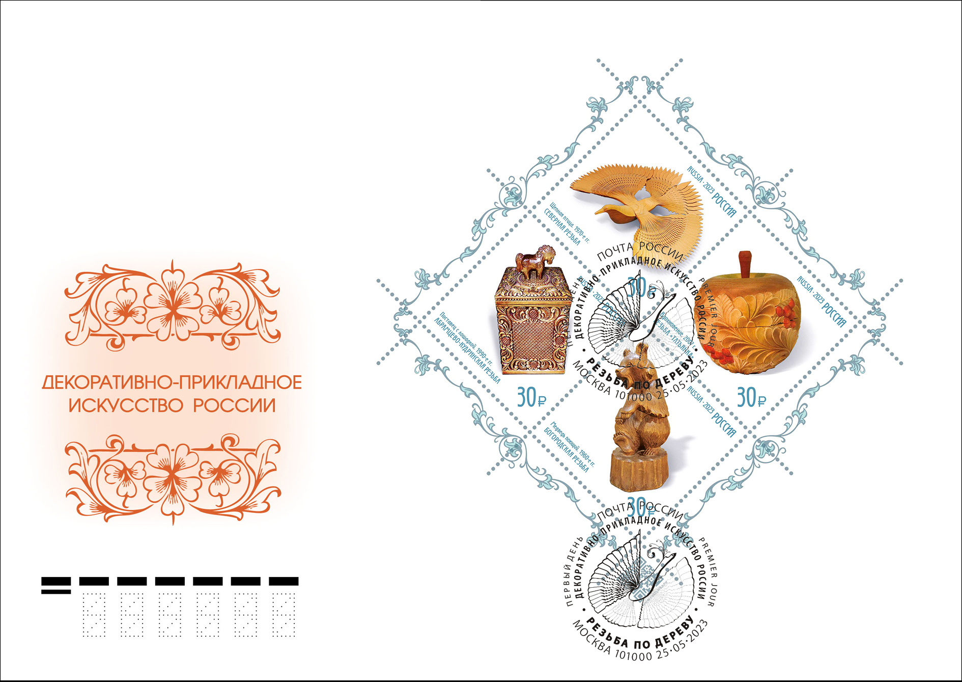 Мелованная. Офсет + частичная лакировка + защитный комплекс + голографическая фольга (на полях листа). Гребенчатая 12¼:12. 42 × 30 мм. 124 × 60 мм. 5 тыс. листов.