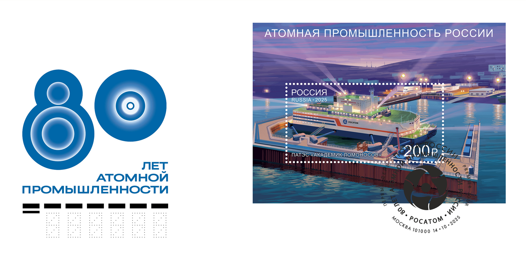 Специальный почтовый блок выпустила «Почта России» к 80-летию атомной промышленности.