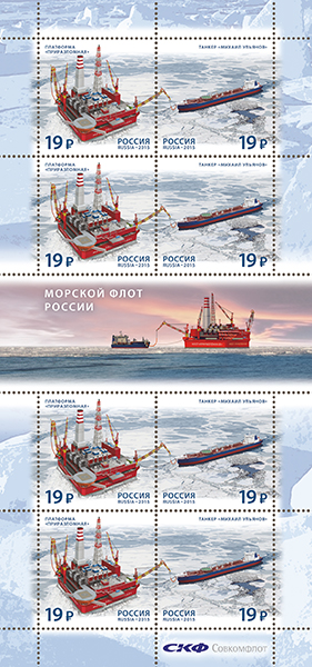 На почтовых марках изображены портреты Е.Я. Осипова и А.И. Маринеско, на купоне — дизель-электрическая торпедная подводная лодка «С-13», отрывок из стихотворения «Песня строевая подводная» И.И. Фисановича.