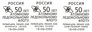 18 июня 2009. Почтовые штемпеля Первого дня "50 лет атомному флоту" (Мурманск, Москва, Санкт-Петербург)