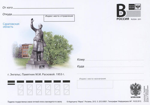 № 62К-2012/2012-103. Союзу филателистов России 20 летДизайнер – Бетрединова Х.