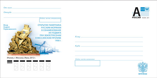 № 92К-2012/2012-145. Фонд Андрея Первозванного. Открытие памятника русским морякам. Италия. г.Мессина. Июнь 2012г.Дизайнер – Яковлев А.