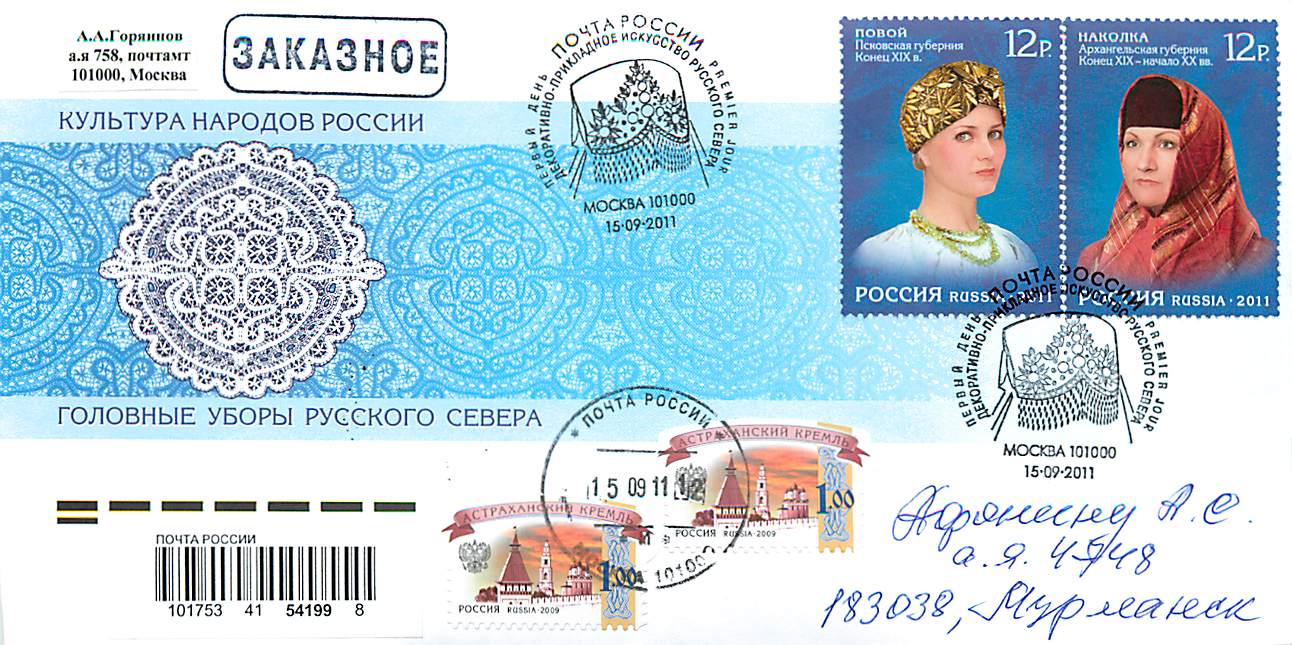 № 204ш-2011. Серия «Культура народов России. Головные уборы Русского Севера»