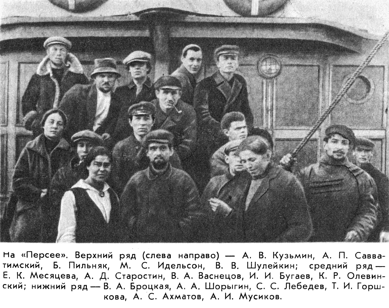 Как исключение, в экспедицию были приняты кинооператор Севзапкино С. С. Лебедев и корреспондент одной из центральных газет Б. Пильняк. Зато я, единственный гидролог, остался без помощников. Иван Илларионович Месяцев меня утешал: «Передаю в ваше распоряжение Пильняка». В душе я очень усомнился в полезности такого помощника.