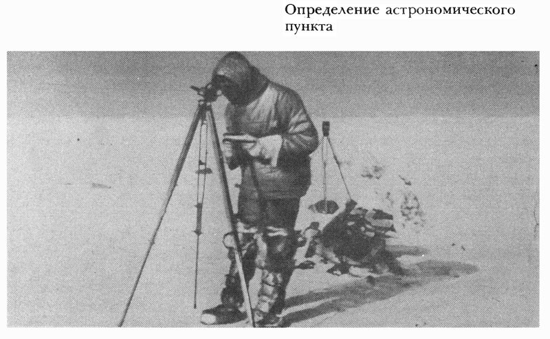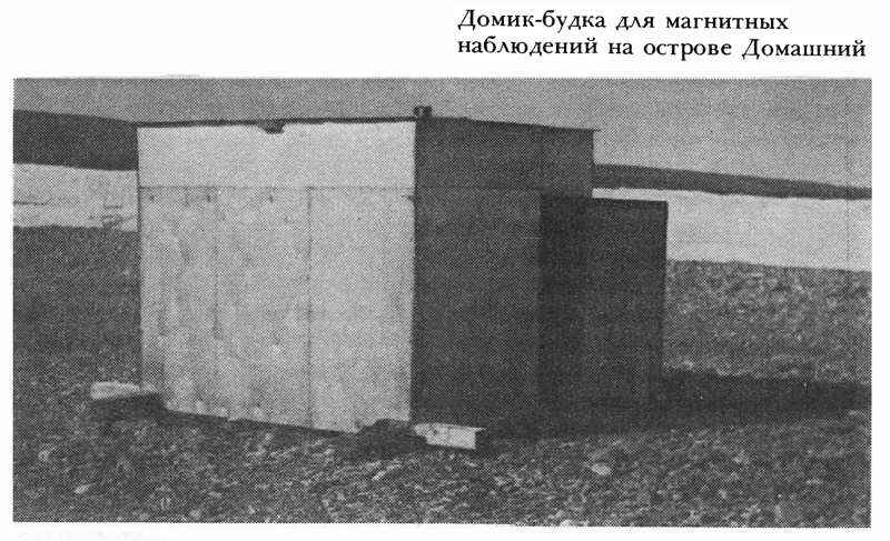 Пользуясь моментами, когда небо было ясным и звездным, я определил географические координаты нашей базы с погрешностью в линейной мере около 100 метров. Для астрономических наблюдений у меня было четыре карманных хронометра и длинноволновый портативный радиоприемник (для приема сигналов точного времени). В 250 метрах от дома я построил домик из фанеры и брусьев площадью около четырех квадратных метров для магнитных наблюдений. Он был собран на деревянных и медных гвоздях, так как присутствие железа нарушало точность показания прибора. Между наружной и внутренней обшивками я проложил для тепла бумагу и войлок, а в примусе (для отапливания) заменил все железные детали латунными.