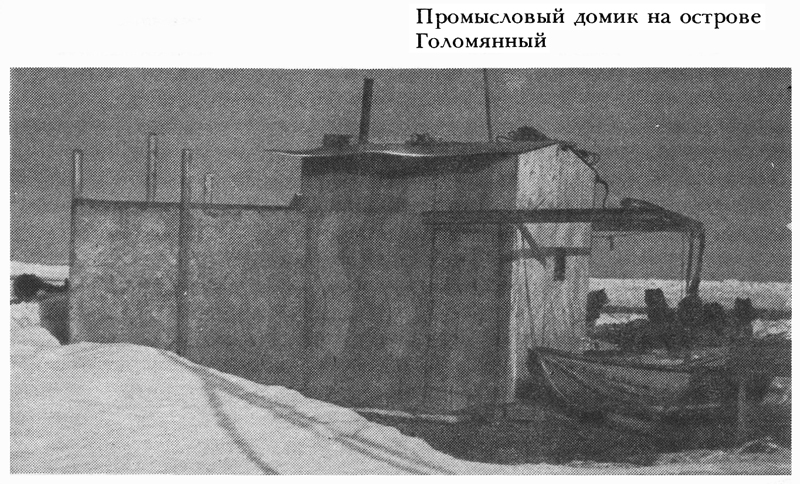 Дни убывали быстро, близилась четырехмесячная полярная ночь. Прижатые к острову льды так и не отогнало. Море замерзло на всем видимом пространстве. При нажимных юго-западных ветрах лед острова сильно торосило, и вскоре тут образовался десятиметровый вал. Со стороны нашей базы, у дома, все было спокойно. Здесь мы защищены с востока вторым островом, названным нами Средний. К северу от нас, как выяснил Журавлев, есть еще остров, названный им Голомянный, то есть наружный, внешний. У северного мыса этого острова проходило сильное течение, которое в прилив разводило льды, образуя широкие полыньи, где всегда держались нерпы, а значит, и медведи. Там Журавлев собирался построить промысловый домик.