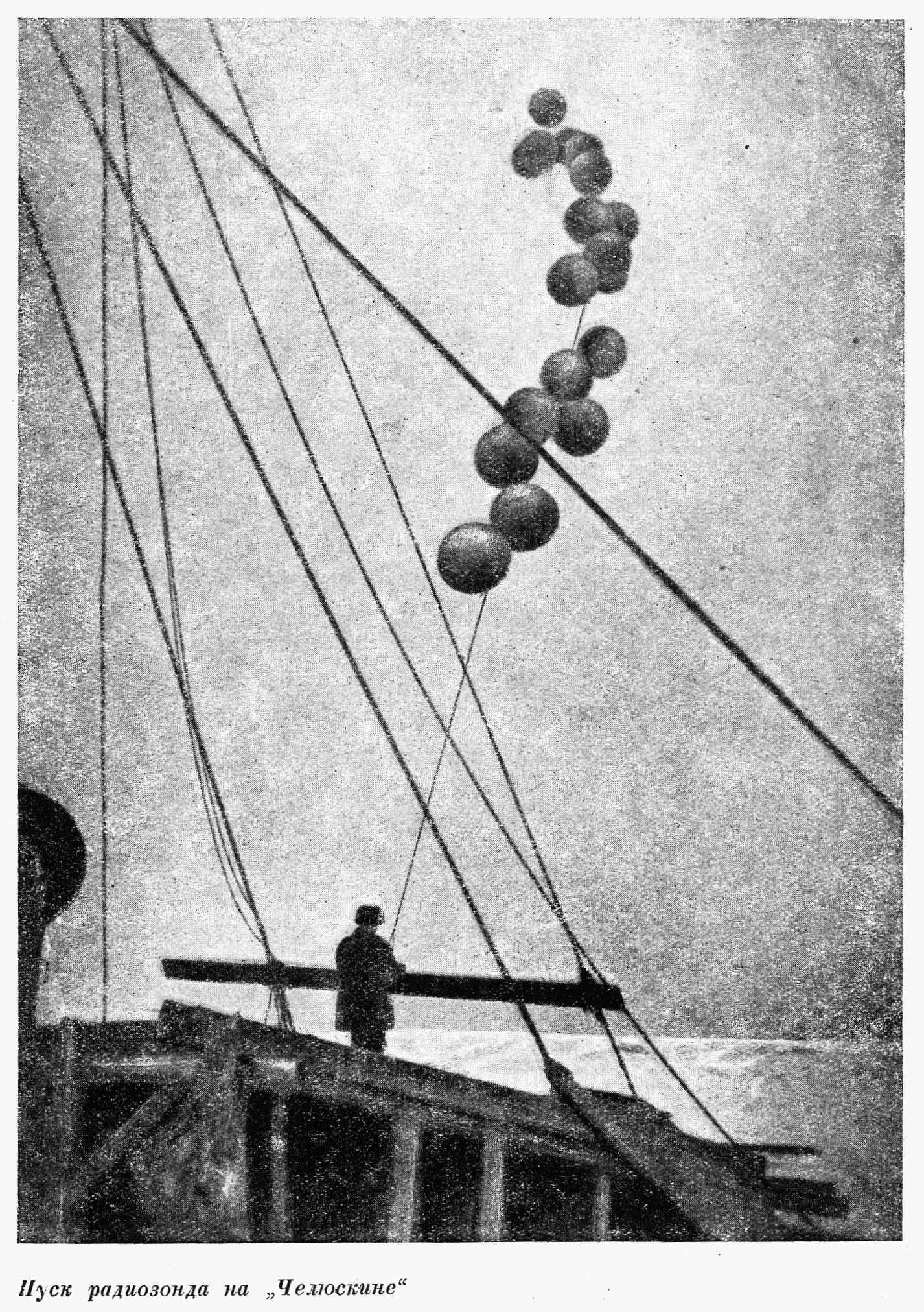 Всего на "Челюскине" было выпущено 11 радиозондов. Наибольшая высота подъема — около 23 километров, где температура оказалась равной минус 42° по Цельсию.