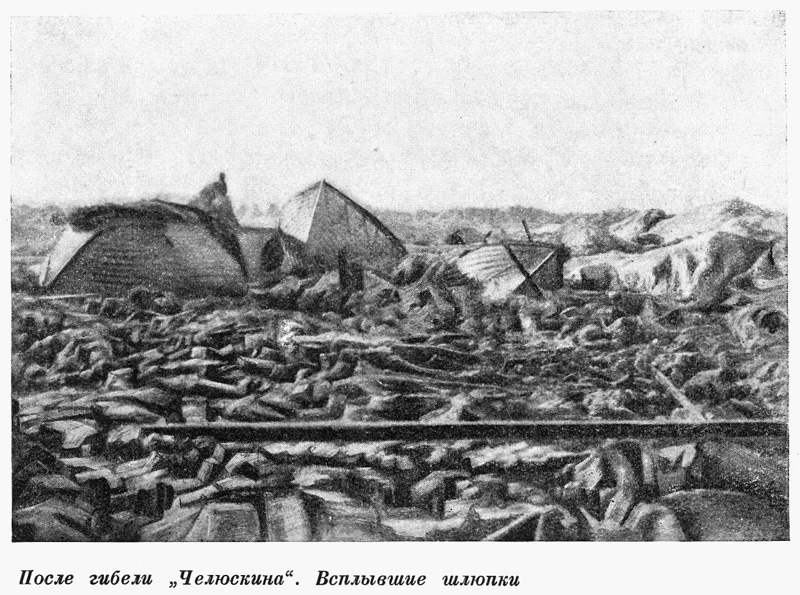 Волна спадает... Груда льда. Опрокинутые шлюпки. Хаос обломков.