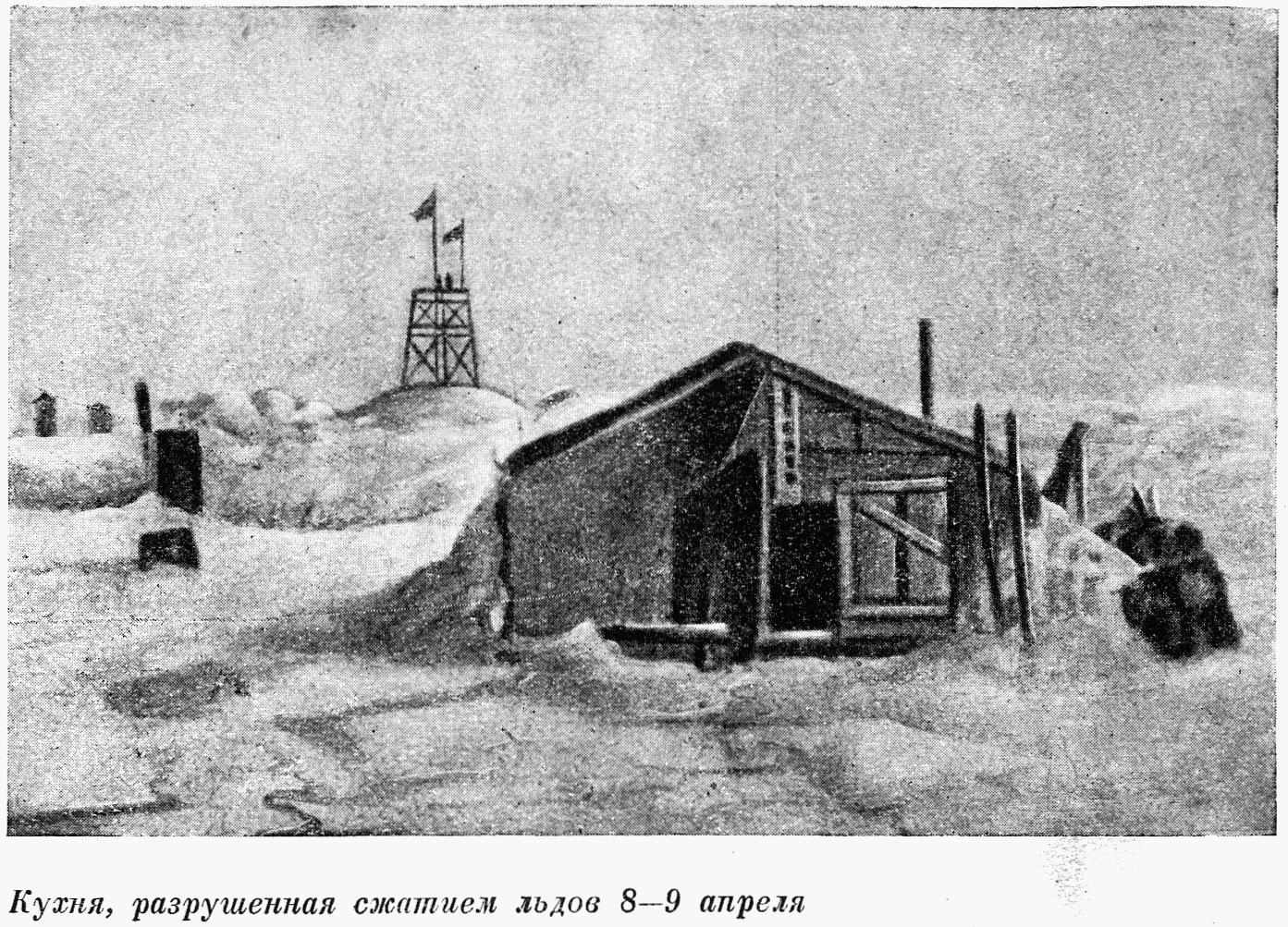 4 апреля в полдень после толчка в лагере началось торошение все по той же трещине. Лед напирал на камбуз, приподнимая его