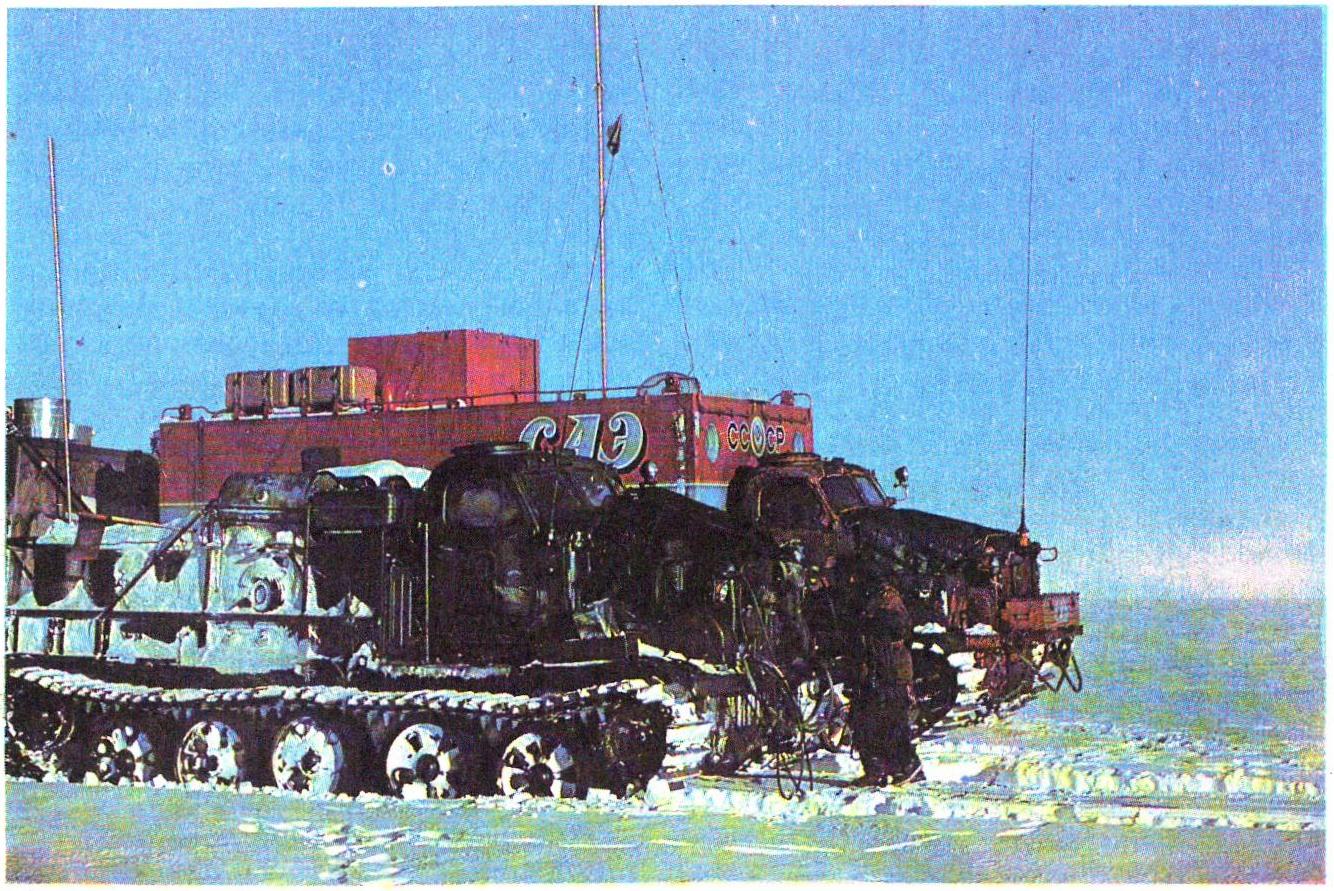 Надо было снова одеваться и идти на мороз убирать метеостанцию. Вдруг в полную мощь пятисотсильного мотора взревела «Харьковчанка» — головная машина начальника похода Она двинулась вперед, сделала круг и повернулась в сторону станции Восток, до которой нам предстояло преодолеть полтысячи километров сыпучего снега. Но тепло и уют маленькой внутриконтинентальной станции дали новые силы большому походу.