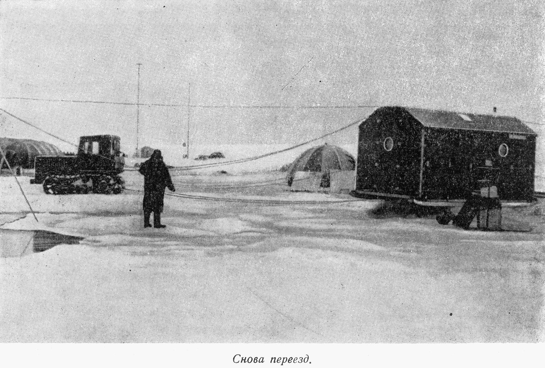 Одновременно мы устанавливали палатки, собирали домики, научные павильоны, готовили аппаратуру, рабочие площадки и приступали к научным наблюдениям. Так как взлетно-посадочные площадки довольно часто ломались, нам приходилось, вооружившись пешнями и лопатами, делать новые полосы, срубая многочисленные торосы и засыпая трещины. Люди работали почти круглые сутки. Отдыхали не более 3—4 часов. От коллектива станции требовалось большое напряжение моральных и физических сил, но, несмотря на усталость, все работали вдохновенно и дружно.