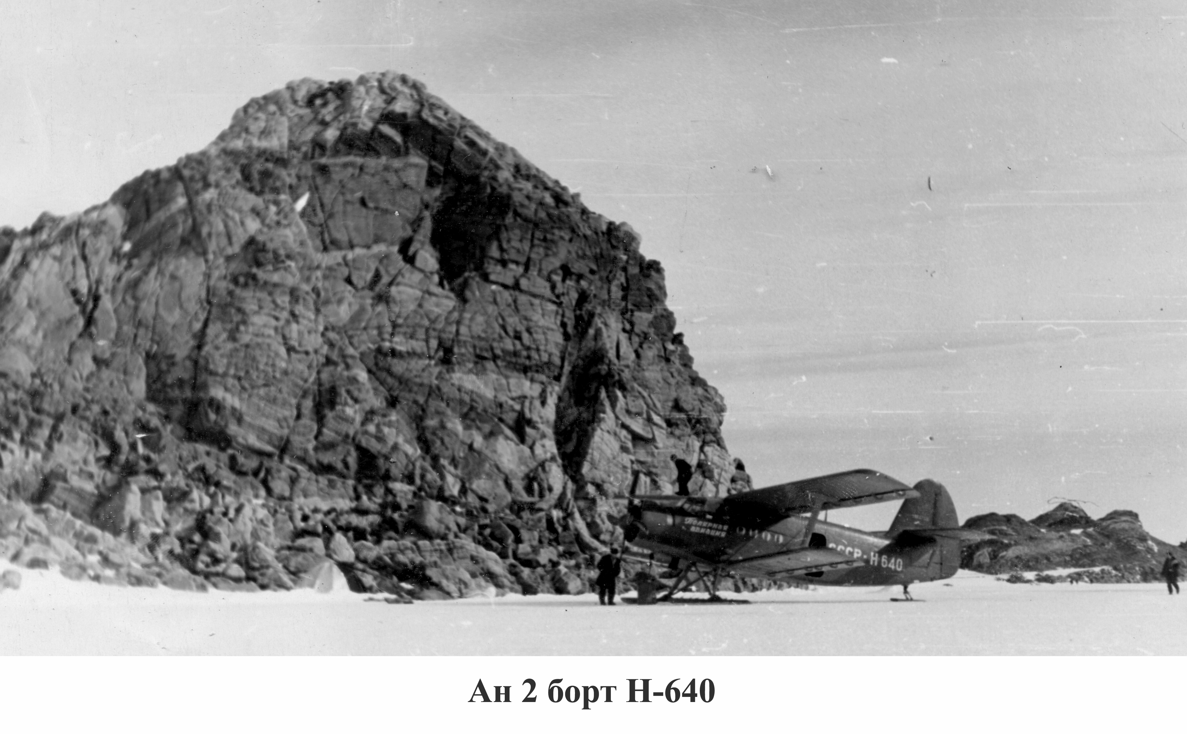 Второй самолет «Ан-2» Н-640 спущен на лед. Мазурук на нем сделал облет местности для определения, где организовать разгрузку экспедиции и расположиться лагерю. Видимо, хорошего места не оказалось, и самолет опять подняли на корабль.
