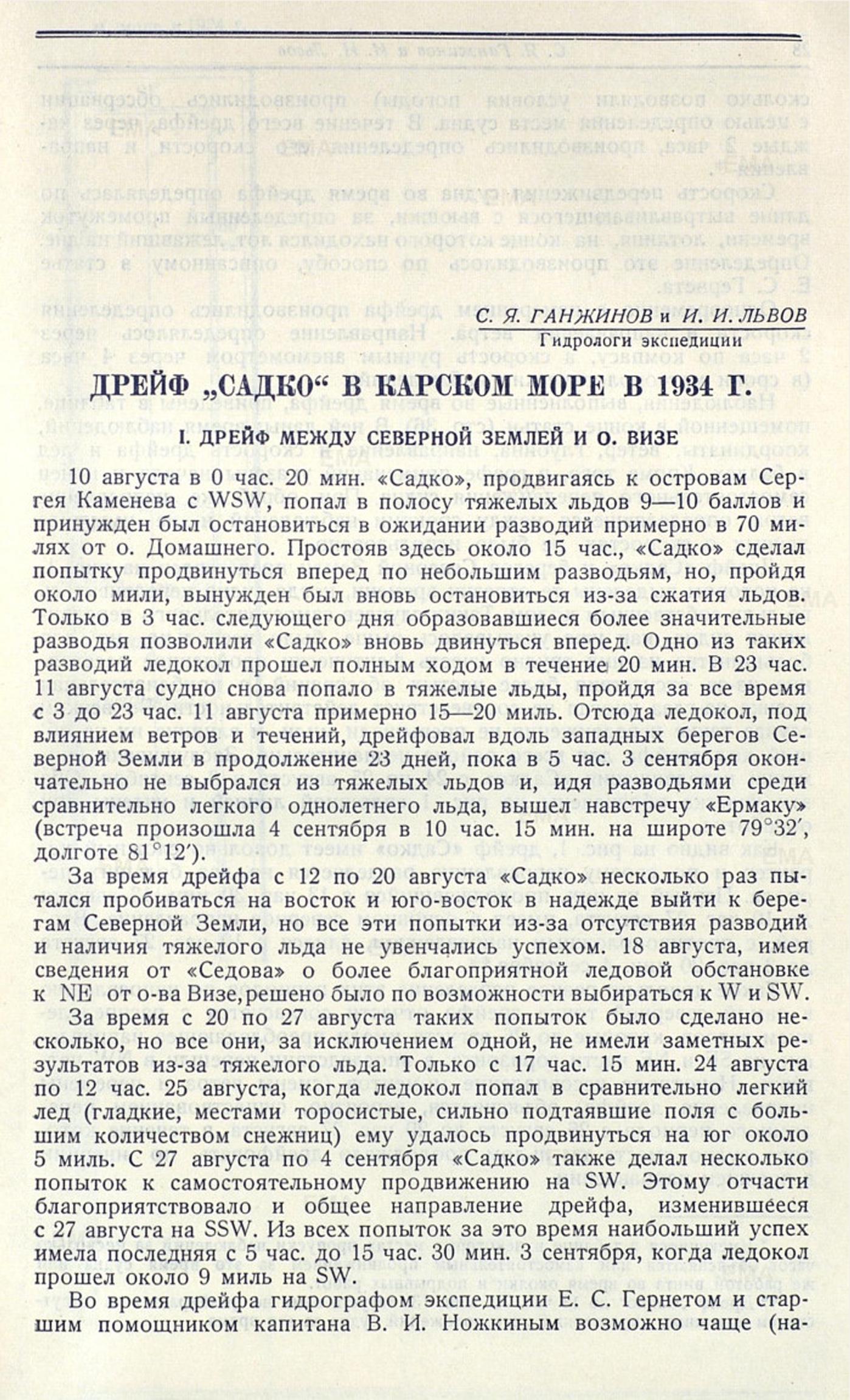 ДРЕЙФ "САДКО" В КАРСКОМ МОРЕ В 1934 Г.