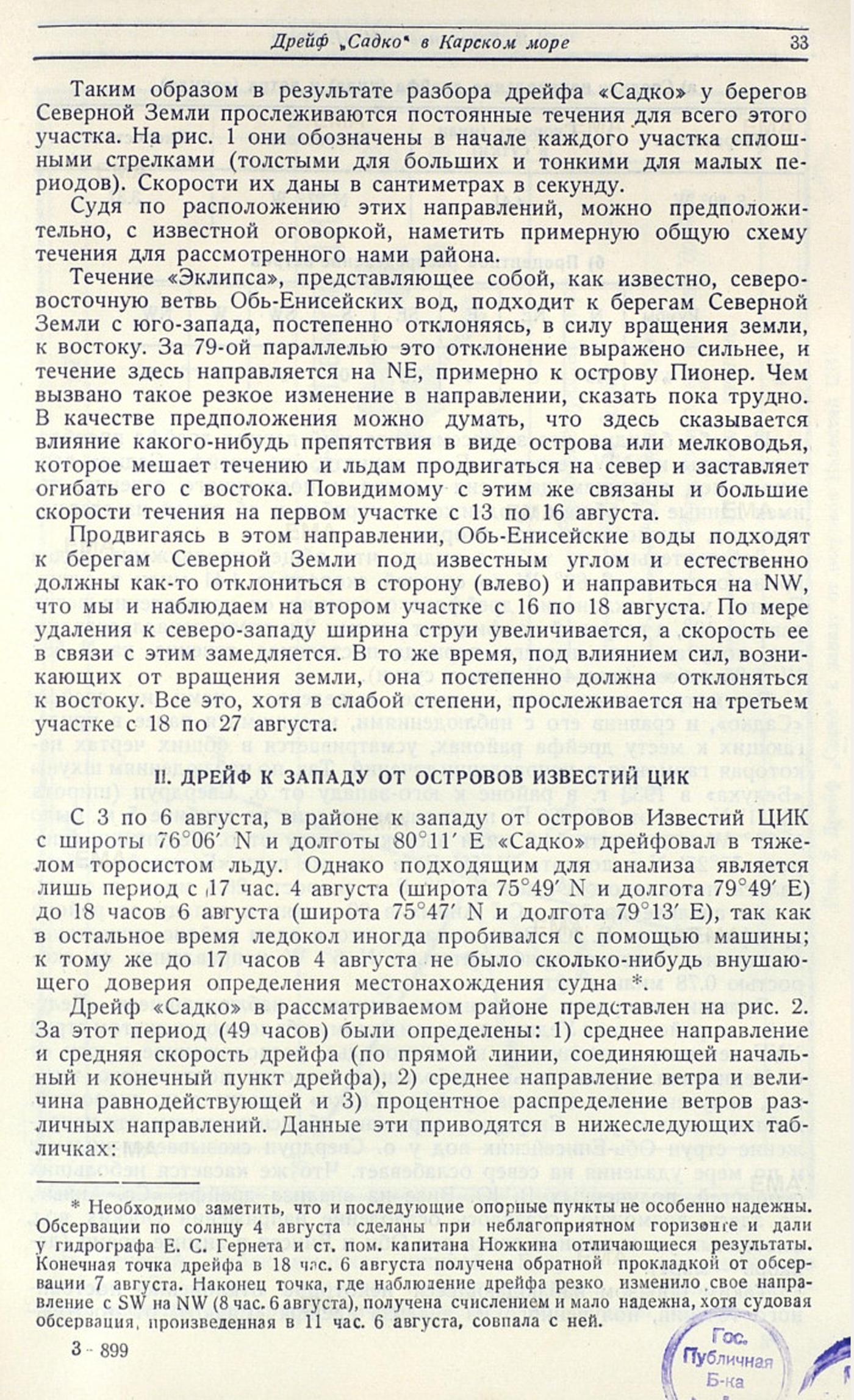 II. Дрейф к западу от островов Известий ЦИК..... (33).