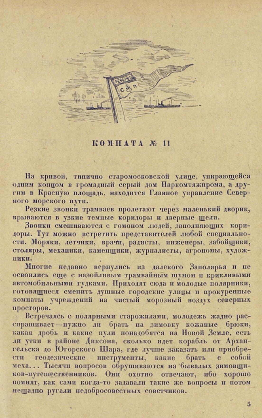КОМНАТА № 11На кривой, типично старомосковской улице, упирающейся одним концом к громадный серый дом Наркомтяжпрома, а другим в Красную площадь, находится Главное управление Северного морского пути.