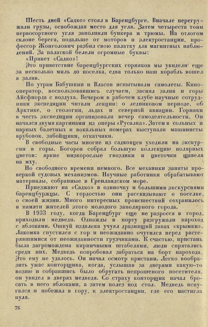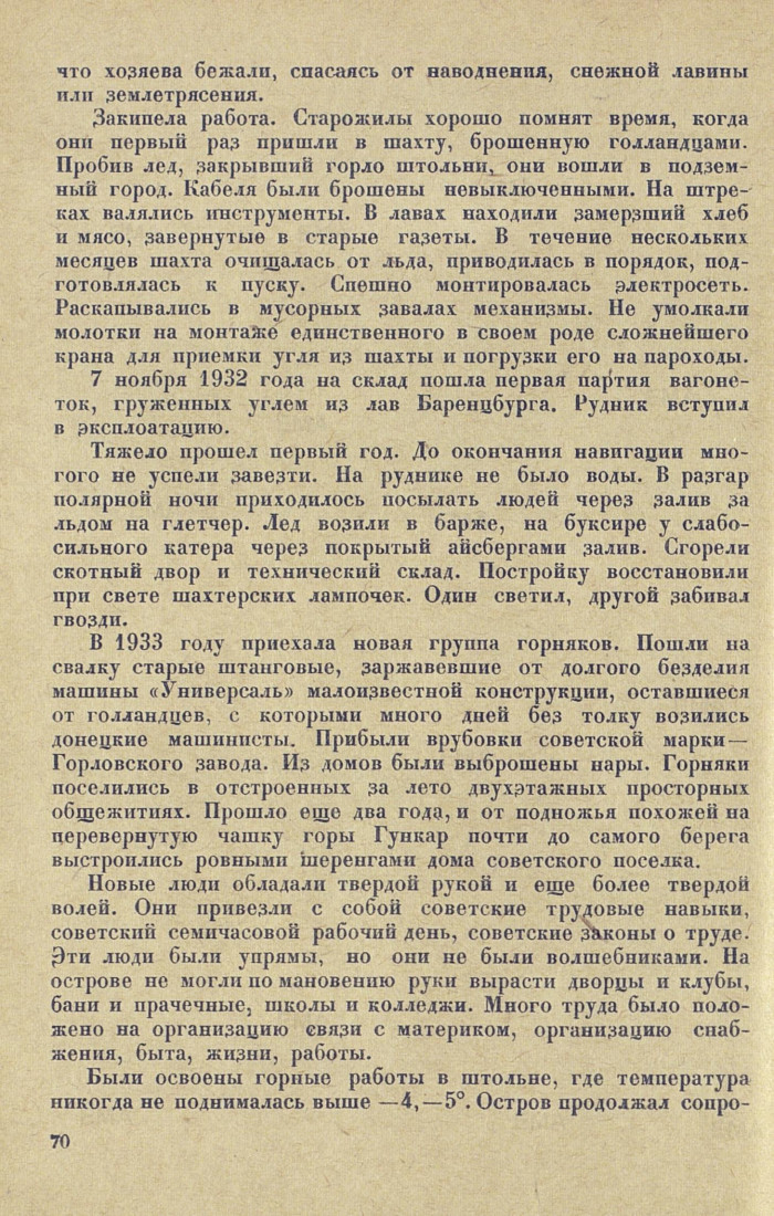 тивляться, люди еще болели, по всем было ясно, что первые испытания, которые предстояло пройти на суровом Шпицбергене, коллектив советских горняков выдержал блестяще.