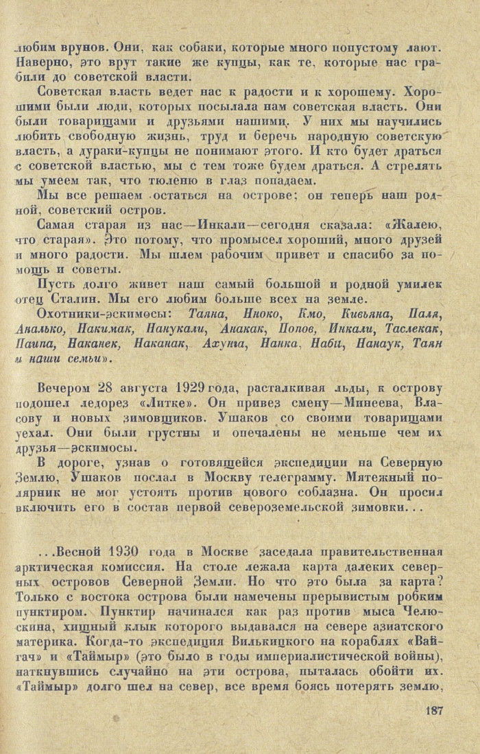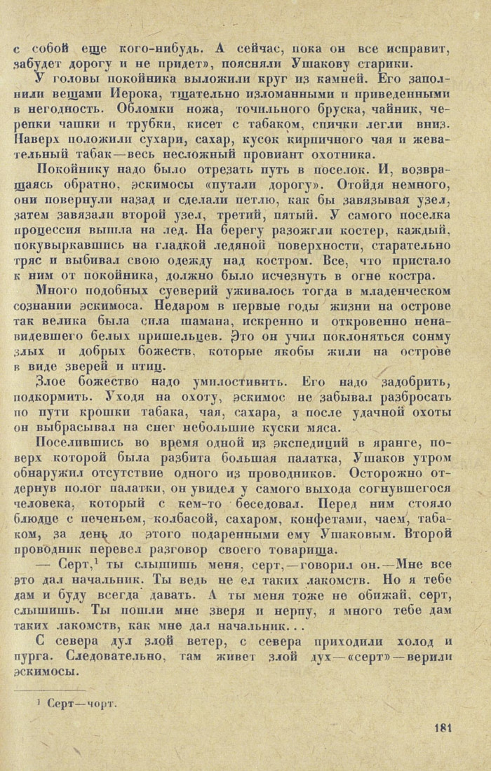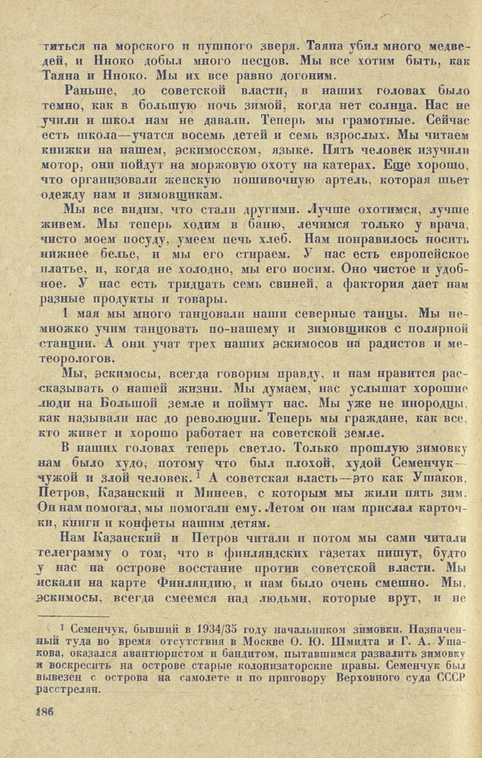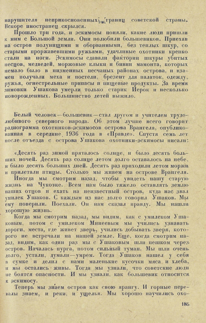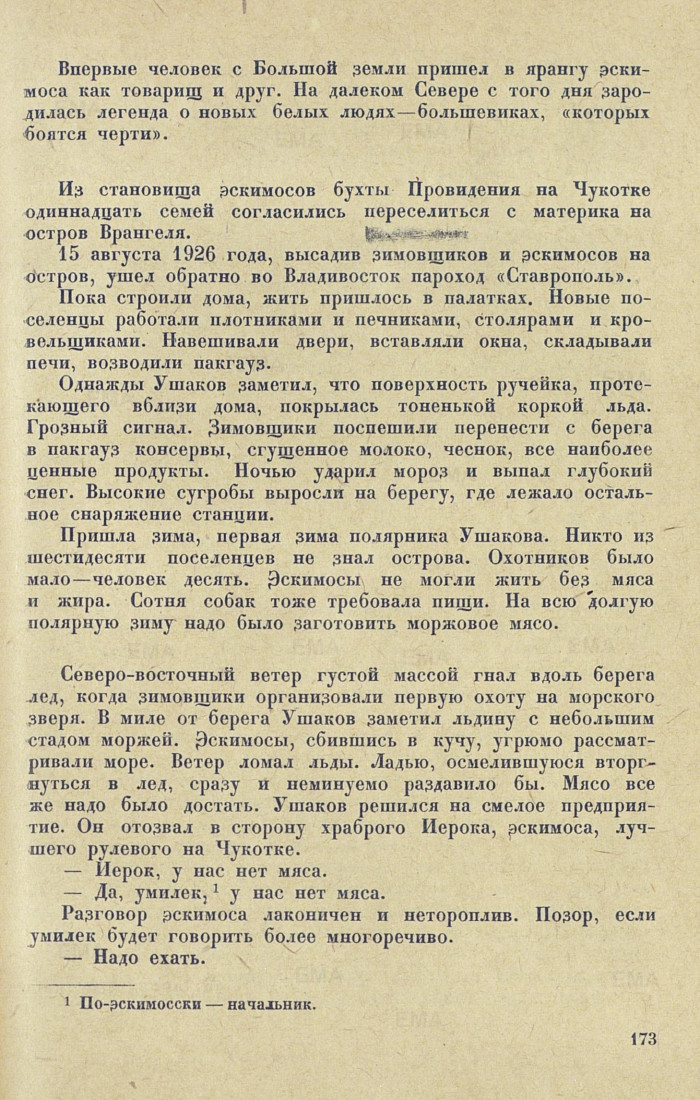 Впервые человек с Большой земли пришел в ярангу эскимоса как товарищ и друг. На далеком Севере с того дня зародилась легенда о новых белых людях — большевиках, «которых боятся черти».
