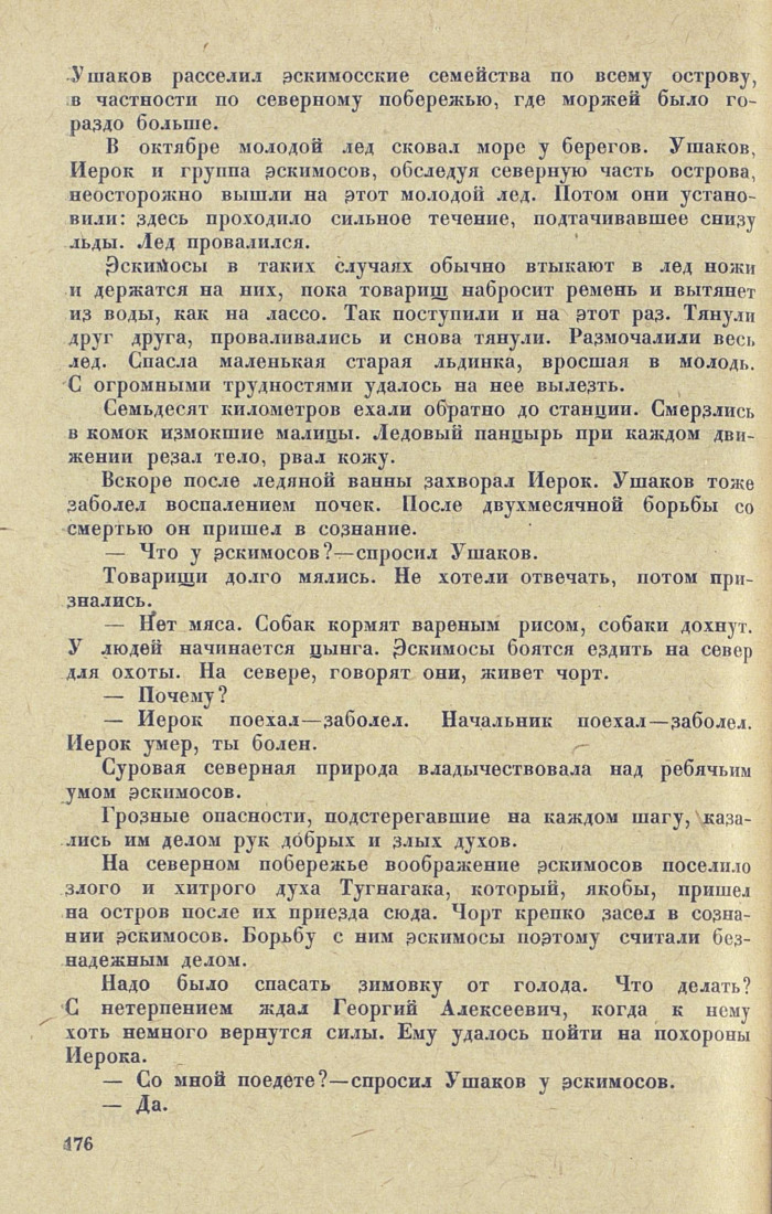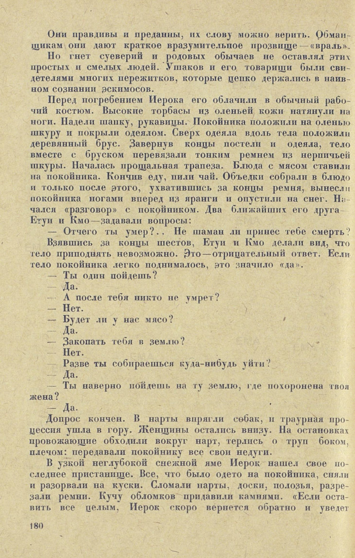 Но гнет суеверий и родовых обычаев не оставлял этих простых и смелых людей. Ушаков и его товарищи были свидетелями многих пережитков, которые цепко держались в наивном сознании эскимосов.
