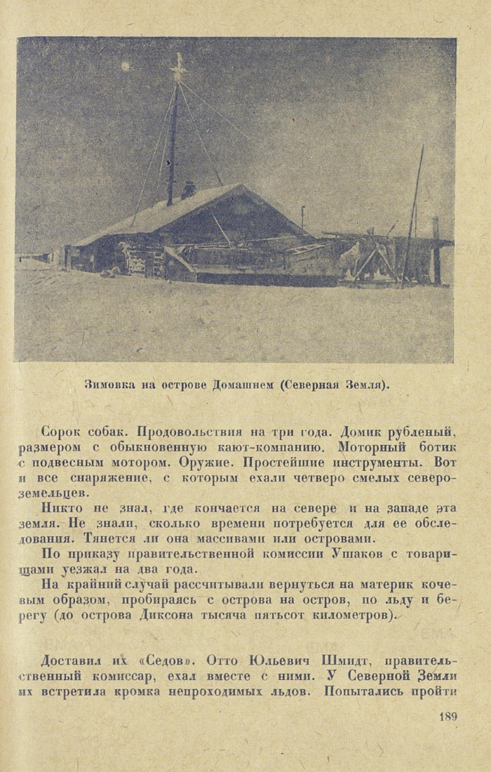 Быстро прошел первый год зимовки. Ушаков рапортовал правительственной комиссии и О. Ю. Шмидту о проделанной работе. Пройдено на собаках, включая подготовительные работы, свыше трех тысяч километров, проведено тысяча пятьсот километров маршрутной съемки, охватывающей площадь около двадцати пяти тысяч квадратных километров, опирающихся на тринадцать астрономических магнитных пунктов.