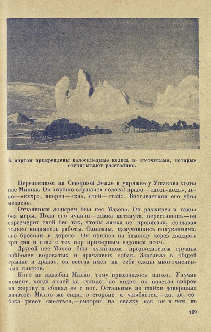 Отчаянным лодырем был пес Мазепа. Он разжирел и хамил без меры. Пока его лупили — лямка натянута, перестанешь — он соразмерит свой бег так, чтобы лямка не провисала, создавая только видимость работы. Однажды, измучившись понуканиями, его бросили в дороге. Он пришел на зимовку через двадцать три дня и стал с тех пор примерным ездовым псом.