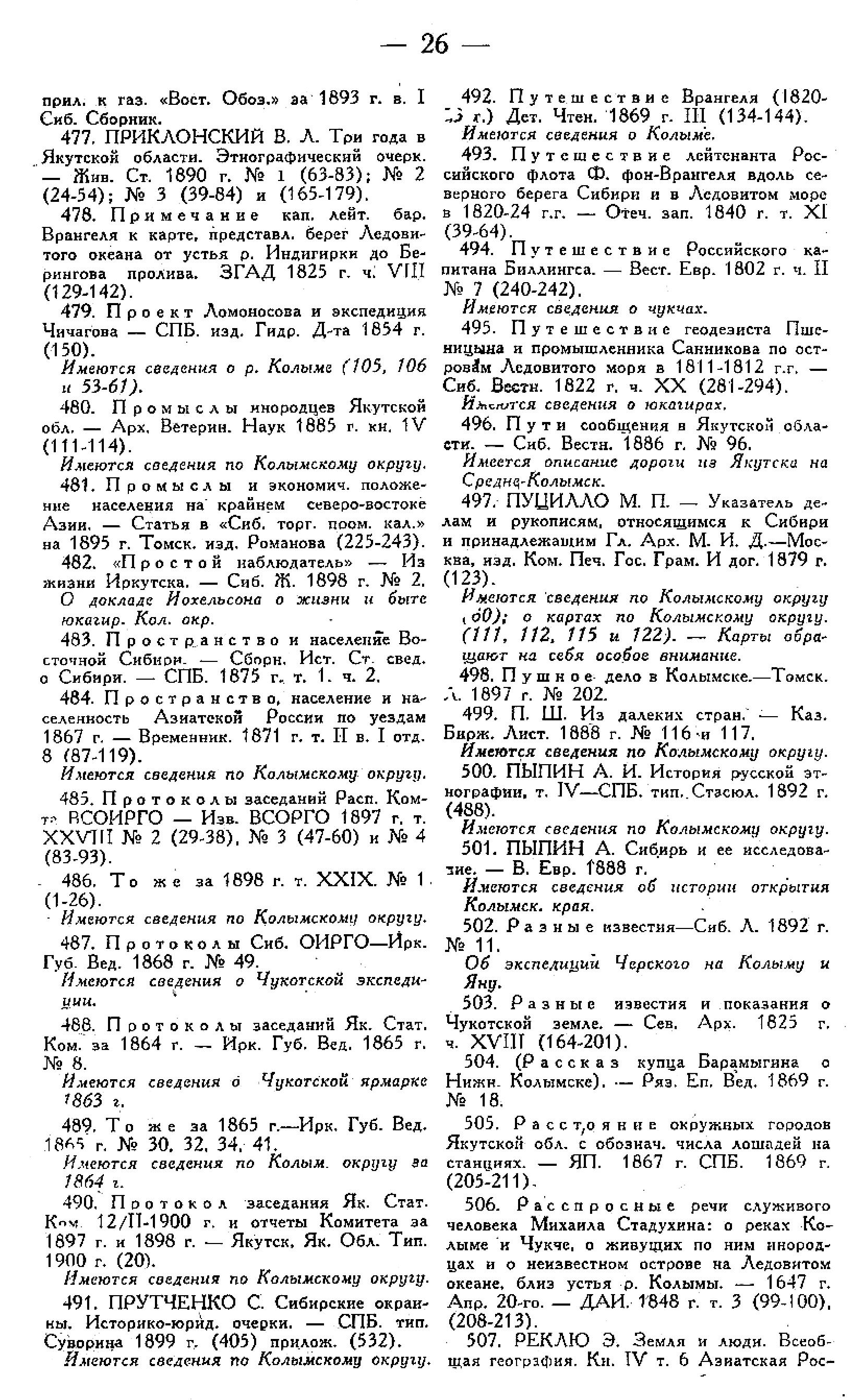 445. П. В. От Якутска до Средне-Колымска. — Нов. Вр. 1890 г., № 5280.