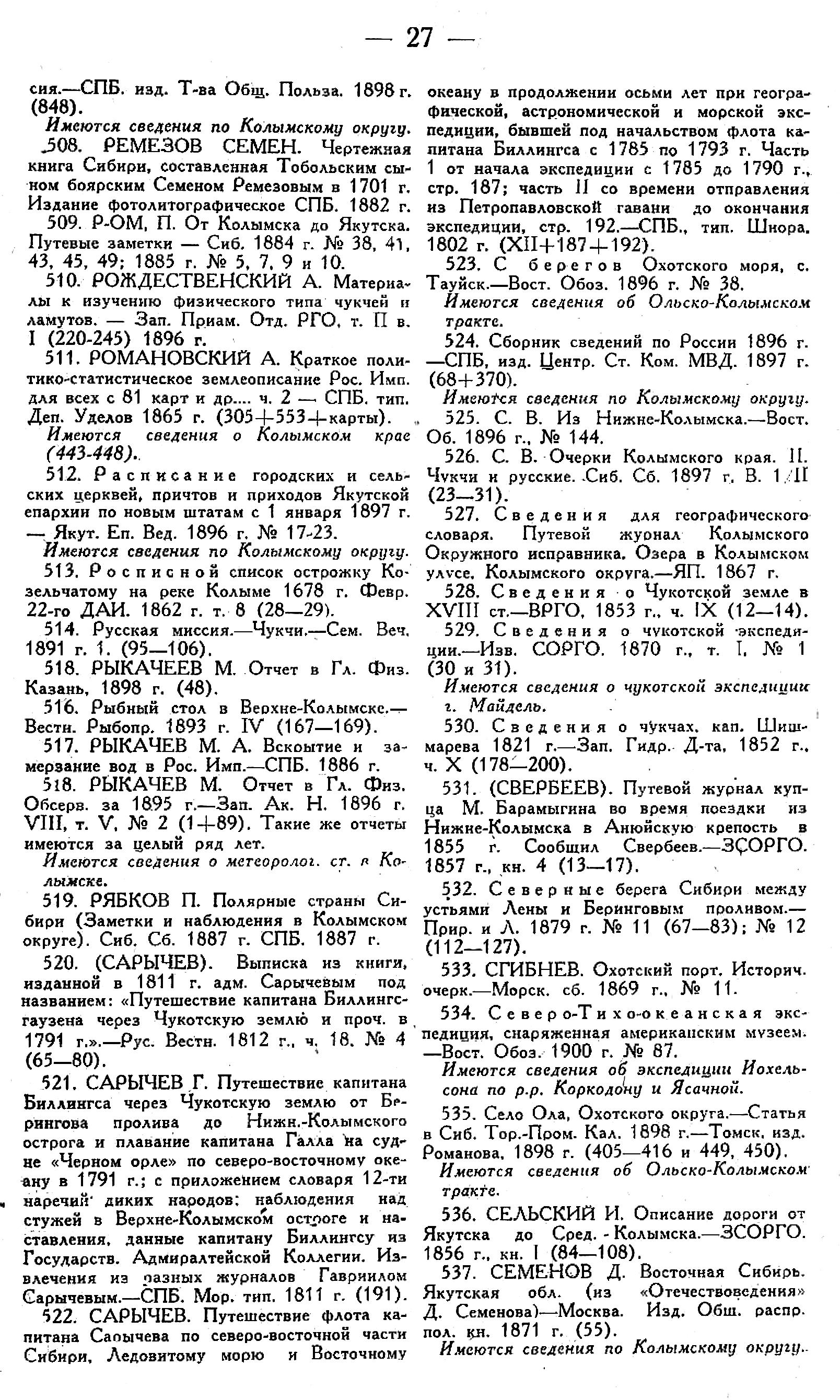 526. С. В. Очерки Колымского края. II. Чукчи и русские.. Сиб. Сб. 1897 г. В. 1/II (23—31).